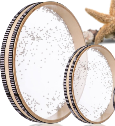 1 tambor de 25,4cm de diámetro y 1 tambor de 15,2cm de diámetro, aproximado. Los tambores oceánicos están diseñados para enriquecer tu práctica de sanación sonora y elevar tu sesión de meditación.